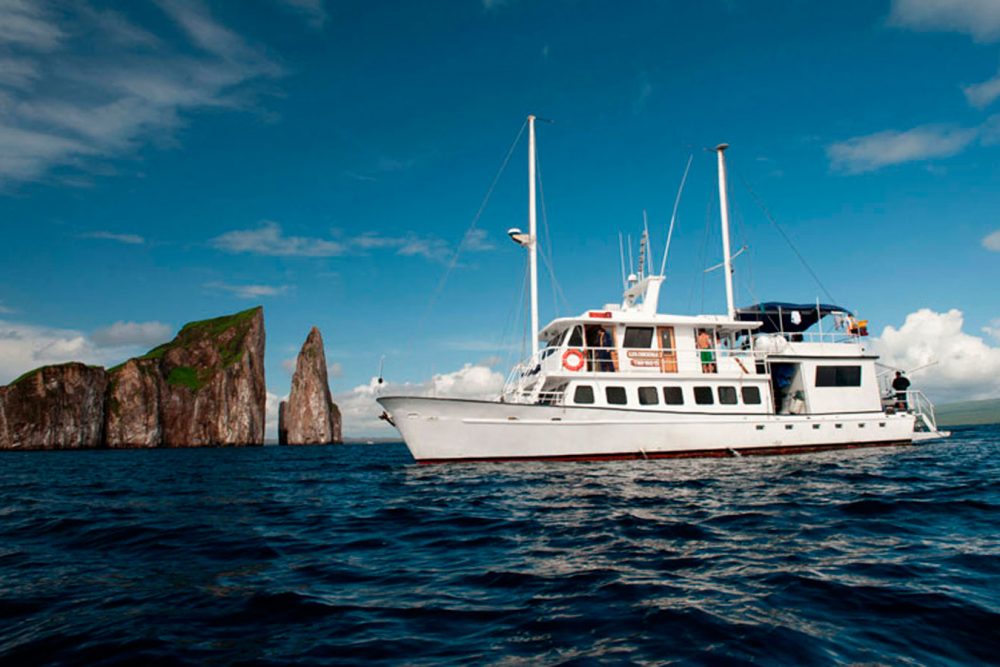 L’un des premiers sites visités par Charles Darwin, Cerro Brujo est une belle plage de sable blanc où pélicans bruns, fous à pattes bleues, lions de mer et iguanes marins vous trouverez. Une version sur terre des roches à proximité de Kicker, Cerro Brujo est un cône de tuf très frappant, érodées. Il est également fantastique plongée en apnée dans les eaux turquoises. Faits saillants: Plongée en apnée ; plage Animaux: Sea lions, pelicans, boobies, marine iguanasPunta Pitt