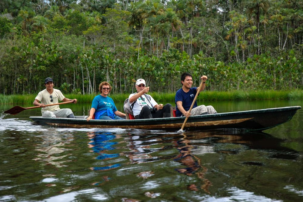 For avid birdwatchers, we can provide specialist bird guides, who know the best sports for the hard-to-find species, and can easily identify species by both sight and sound. Oscar Tapuy our local expert who has been with at Sacha since 1995, estimates that the spots 60 species per day on average. The guides carry telescopes, and have become dabhands at taking photos with your camera or phone through the lenses.