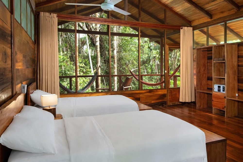 You will feel like you are on the very top of the world on our 135-foot (43 meter) observation tower, a platform built on the highest branches of a giant kapok tree. From there, you will see great panoramic views of the forest, while the 500 species of birds registered in the area, including rainbow-colored toucans and parrots, become easy to spot.